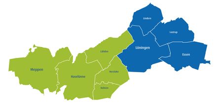Konkret gehören zur Gebietskulisse die cloppenburgischen Gemeinden Essen (Oldb.), Lindern und Lastrup, die Stadt Löningen sowie die emsländische Samtgemeinde Herzlake, bestehend aus den Gemeinden Lähden, Herzlake und Dohren, die Stadt Haselünne sowie die Stadt Meppen, mit ihren Ortsteilen Apeldorn, Bokeloh, Helte und Teglingen.